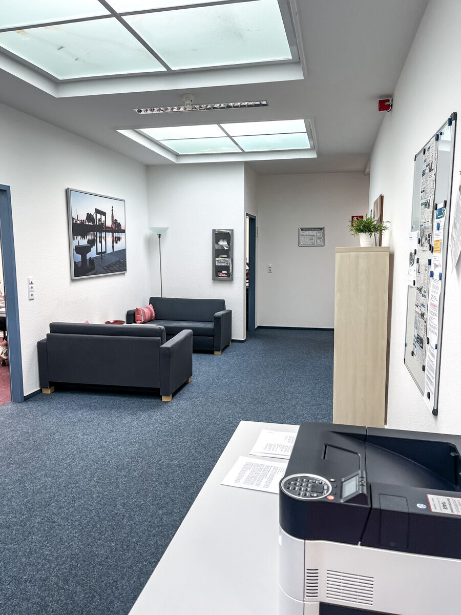 Wenn sich der Hunger meldet, finden Sie ausreichend Einkaufsmöglichkeiten in der Nähe. Gerne wird die Mittagspause auch für einen Spaziergang in der kleinen, etwa 100 Meter entfernten Grünanlage genutzt. Frisch gestärkt und erholt lernt es sich gleich noch besser.