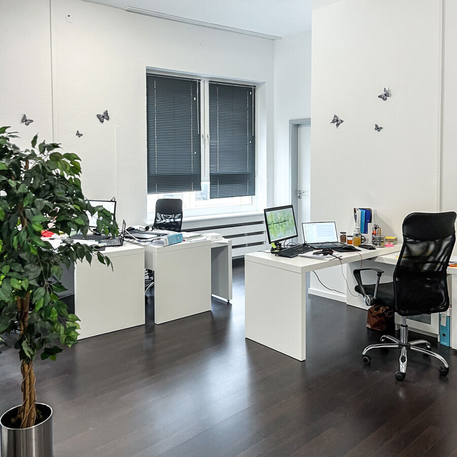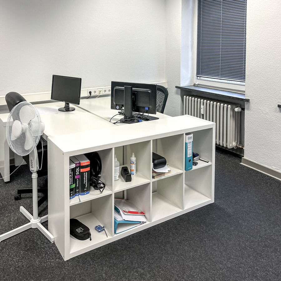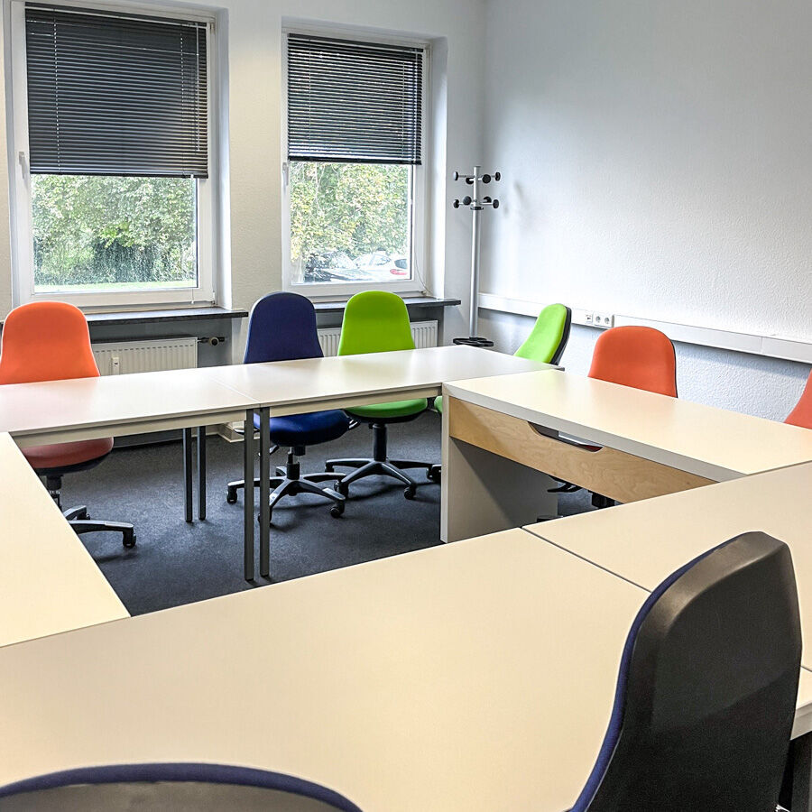 Ihr Unterricht findet von 8 bis 16:15 Uhr im ersten Stock statt. Die Räume wurden im Sommer 2018 komplett umgebaut und vollsaniert. Ein offener Eingangs- und Küchenbereich mit kleinen Sitzecken und einer Esszimmergarnitur lädt zum Verweilen ein. Die Räume sind lichtdurchflutet und mit schalldichten Milchglaswänden abgetrennt, sodass Sie eine angenehme Lernatmosphäre vorfinden. Als weitere Lichtquellen dienen die großen und zahlreichen Fensterfronten. Die gesamte Etage ist mit modernen Tageslichtleuchten ausgestattet.