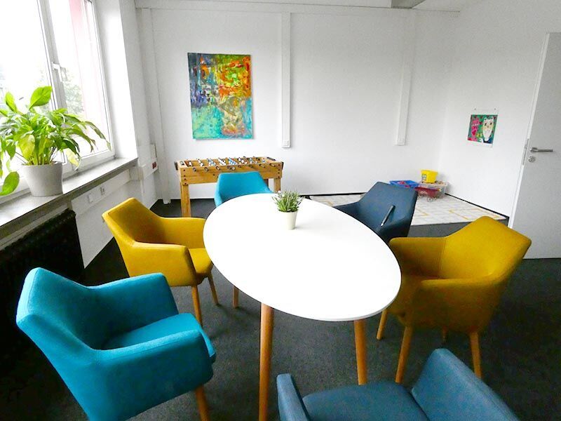 Eine große Glasfront bildet den Eingangsbereich des klassischen Bürokomplexes. Ihre Schulungsräume im Erdgeschoss sorgen mit großen Fenstern und farblichen Akzenten für eine angenehme Lernatmosphäre. Ihre Unterrichtszeit liegt zwischen 8 und 16:15 Uhr, aber natürlich sind Ihnen auch Pausen vergönnt. Stärken Sie sich in der vollausgestatteten Teilnehmerküche oder besorgen Sie sich auswärts einen Snack. In der Nähe finden Sie einen großen Supermarkt mit integriertem Café, eine Bäckerei sowie weitere Einkaufsmöglichkeiten. Und direkt gegenüber befindet sich ein angesagter Italiener.