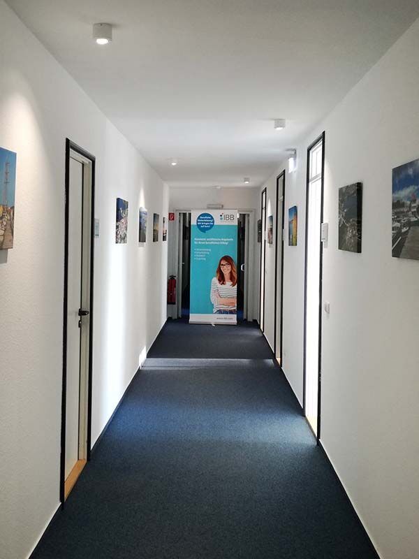 Ihre Schulungsräume befinden sich im zweiten Stock des rot geklinkerten ehemaligen Finanzamt-Gebäudes mit hübschen Gauben. Ihr Unterricht findet hier zwischen 8 und 16:15 Uhr statt.