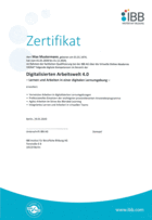 Egal bei welcher Fortbildung: Als Teilnehmer des IBB lernen Sie im virtuellen Klassenraum (Viona) und werden somit kontinuierlich im Umgang mit der digitalen Umgebung geschult. Nach Abschluss erhalten Sie neben dem Kurszertifikat ein gesondertes Zusatzzertifikat vom IBB, das Ihre Kompetenzen in der digitalen Arbeitswelt bescheinigt.